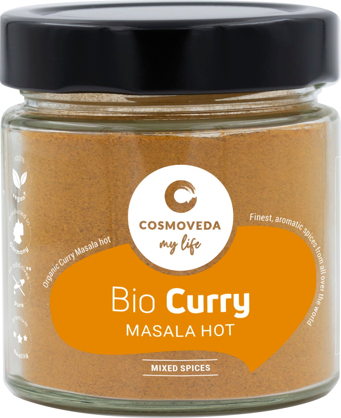- BIO Curry Masala Hot ist eine Mischung aus 11 wertvollen Gewürzen und wird vielseitig in der Indischen und Ayurvedischen Küche verwendet.