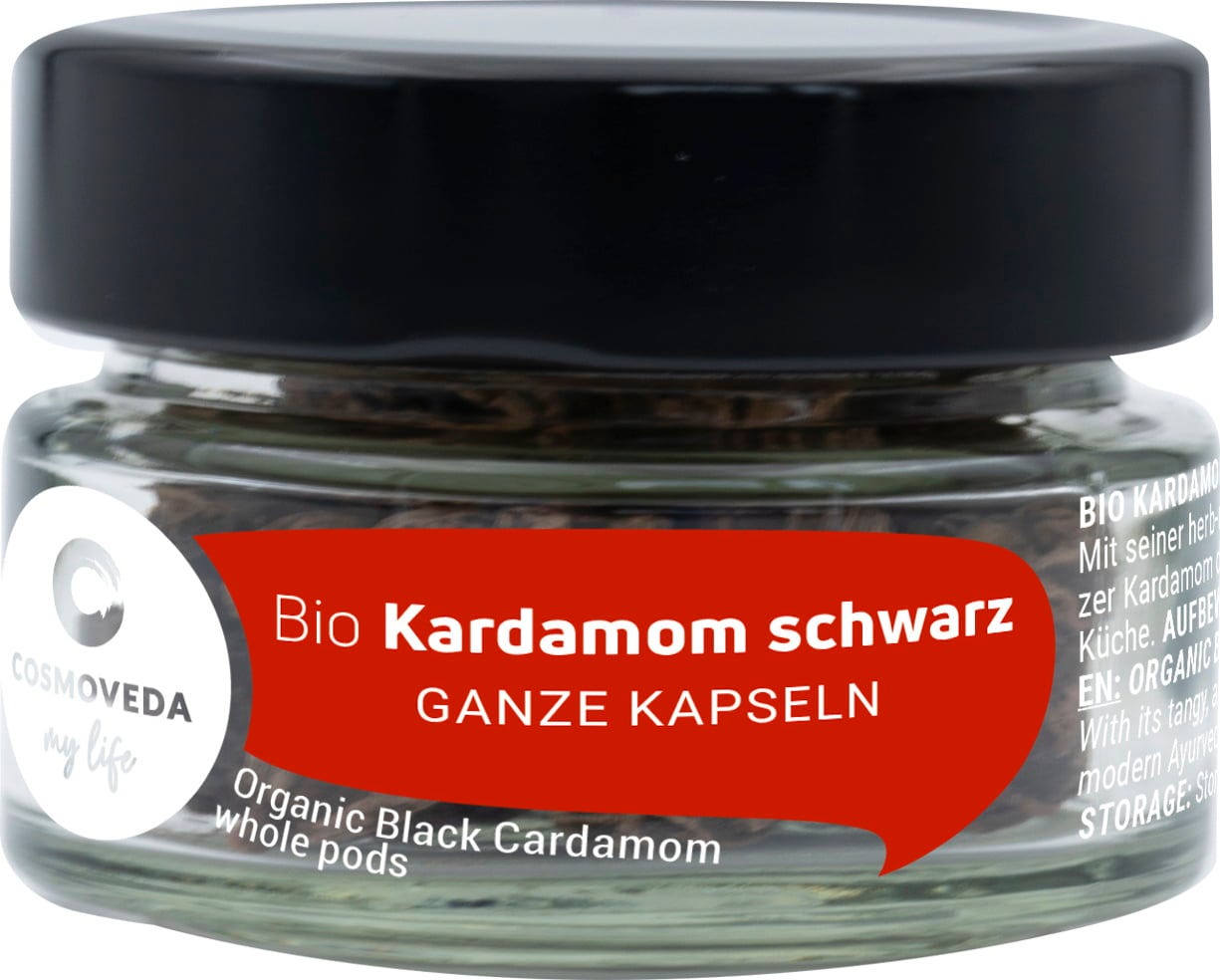 - Im Gegensatz zum grünen Cardamom, der als "kühlendes" Gewürz gilt, ist schwarzer Cardamom ein "wärmendes" Gewürz.