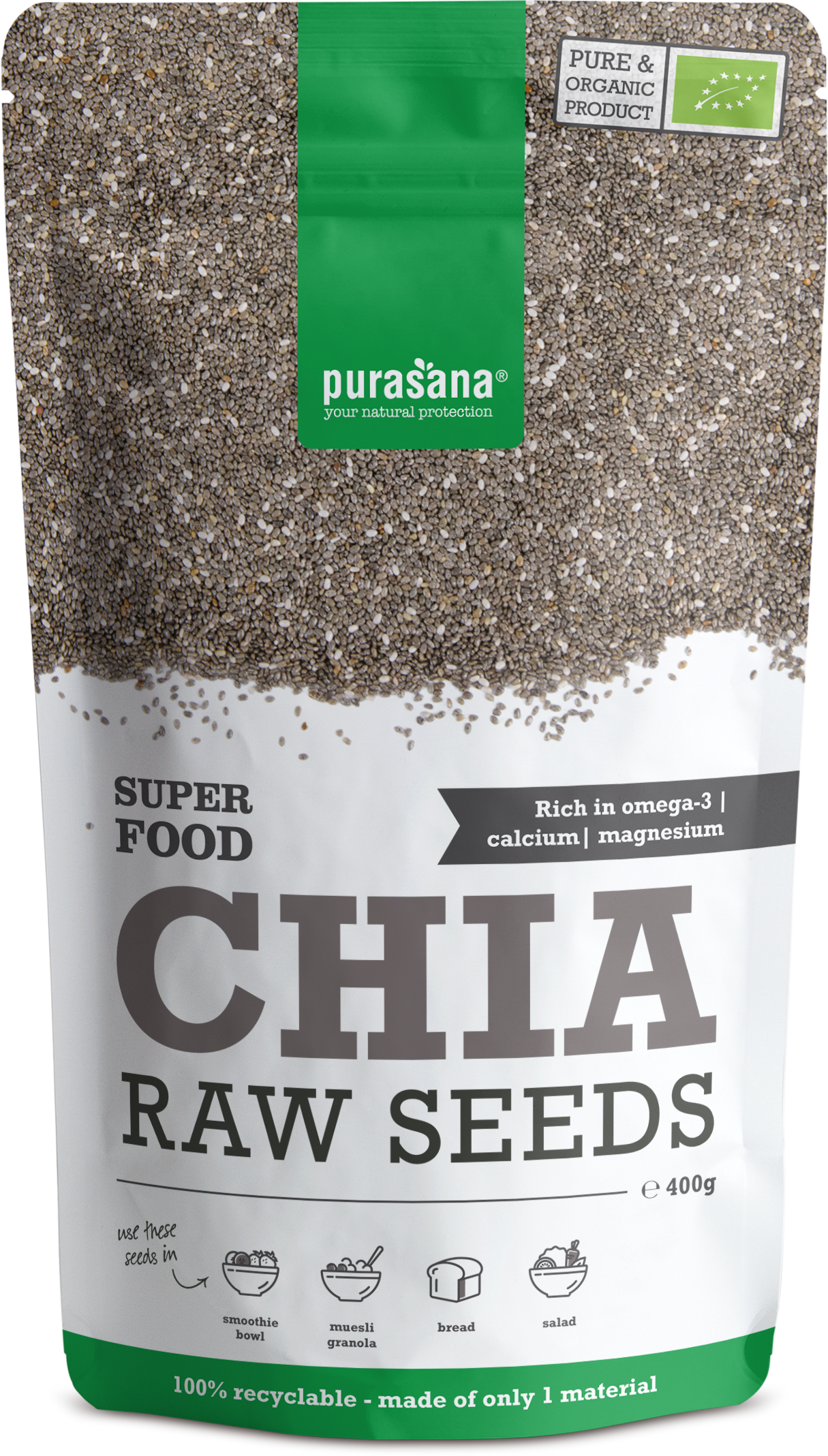 Das Chia-Kraut ist in Südamerika beheimatet. Sie verfügen über ein optimales Verhältnis zahlreicher Nährstoffe und sekundärer Pflanzenstoffe. Die Bio Chia Samen von Purasana sind unverarbeitet und frei von Zusätzen.