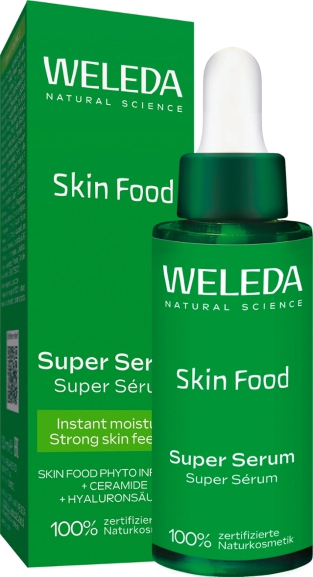 Das Super Serum pflegt deine Haut mit einer Mischung aus Hyaluronsäure und der Skin Food Phyto-Infusion von Weleda, die aus hochwertigen Auszügen aus Kamille, Calendula, Rosmarin sowie Stiefmütterchen besteht. Es versorgt die Haut sofort mit Feuchtigkeit und verleiht ihr einen einzigartigen Glow.
