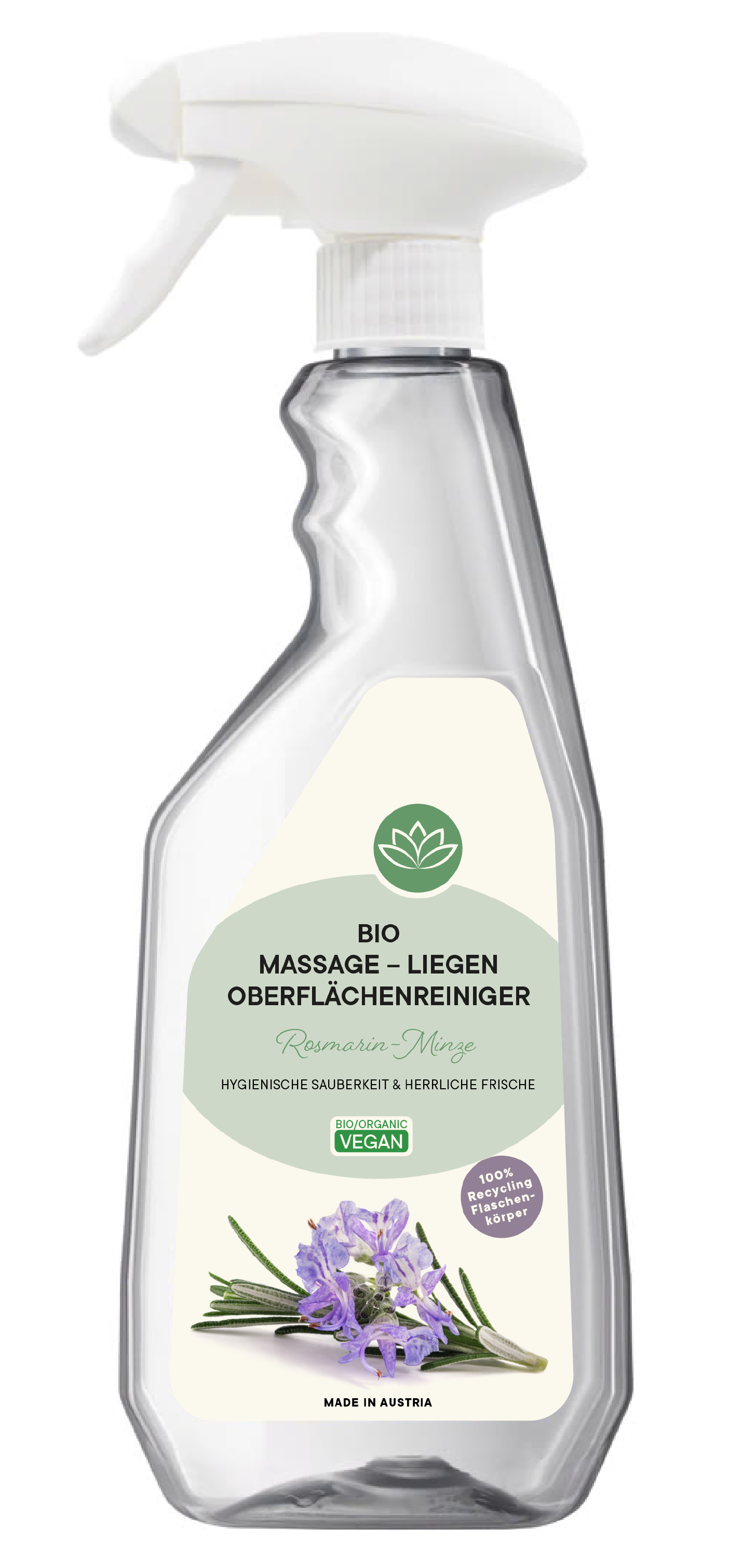 Dieser natürliche Spezialreiniger eignet sich für die Reinigung von Massageliegen und wasserfeste Oberflächen. Die Formel beruht auf Bio-Rohstoffen und sorgt im Nu für hygienische Sauberkeit und einen wunderbaren krautig-frischen Duft.